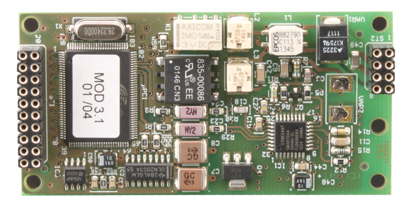 Überspannungsschutz für analoge FWM1 (Anschluss an das Telefonnetz). Dieser Überspannungsschutz kann bei zu großer Belastung z.B. Blitzschlag zerstört werden. Dieses dient dem Schutz der Elektronik. Der Überspannungsschutz kann ohne großen Aufwand ersetzt werden. Hierbei ist zu beachten, dass der Schutzleiter (PE) angeschlossen wird, da der Schutz ansonsten unwirksam ist !