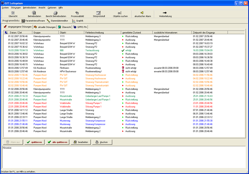 Das GfT Leitsystem ist eine leistungsfähige Einheit zur Datenerfassung und -auswertung sowie zur Protokollierung von technischen Störungen der Endgeräte vom Typ FWM1.